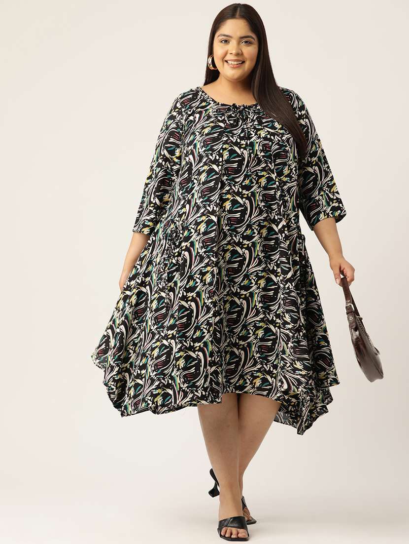 - » women knee length printed plus size a-line dress with shrug