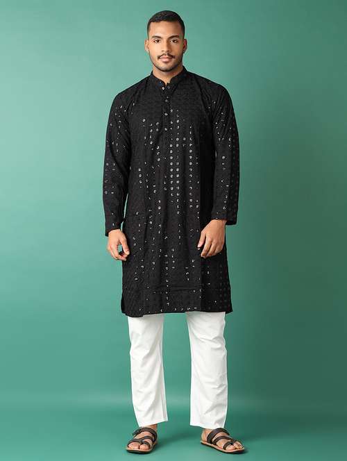 - » men black mandarin neck kurta pyjama set