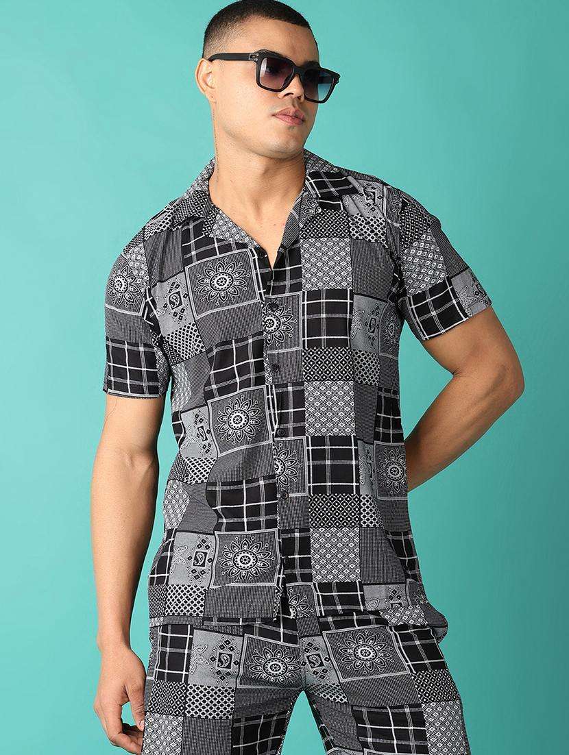 - » men printed short sleeve casual shirt