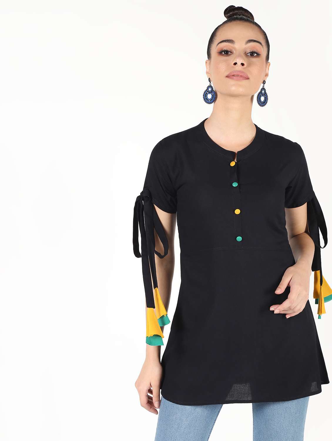 - » tassel tie up sleeved solid top