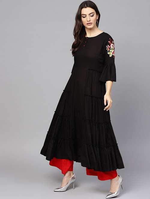 - » solid tiered bell sleeves kurta