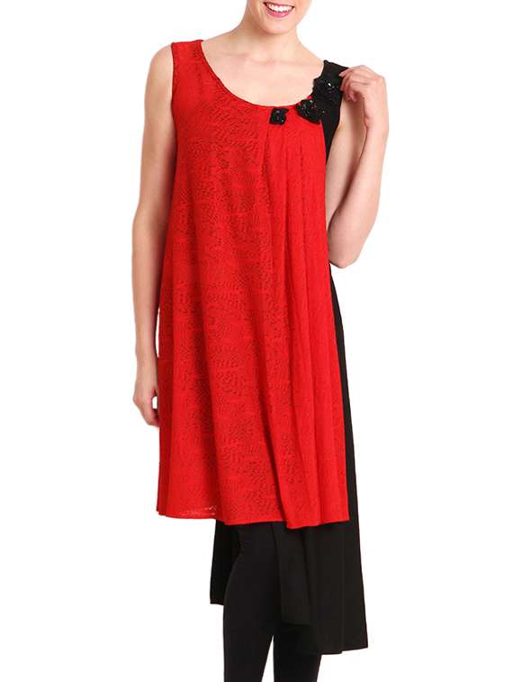 - » red solid asymmetrical tunic