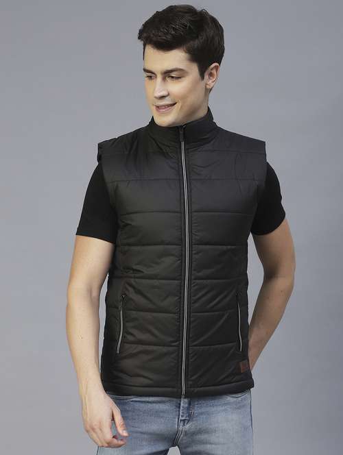 men black solid sleeveless quilted jacket - 21143614 - Very Small Image - 1