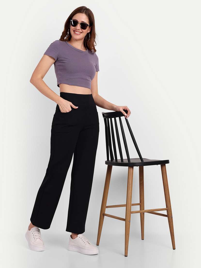 black flat front full length trouser