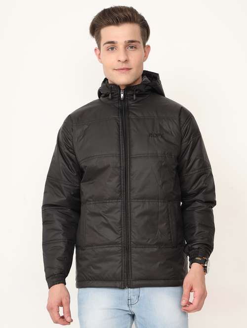 - » men black logo embroidered polyester casual jacket