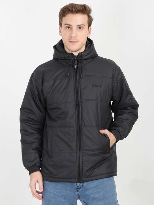 - » men black logo embroidered polyester casual jacket