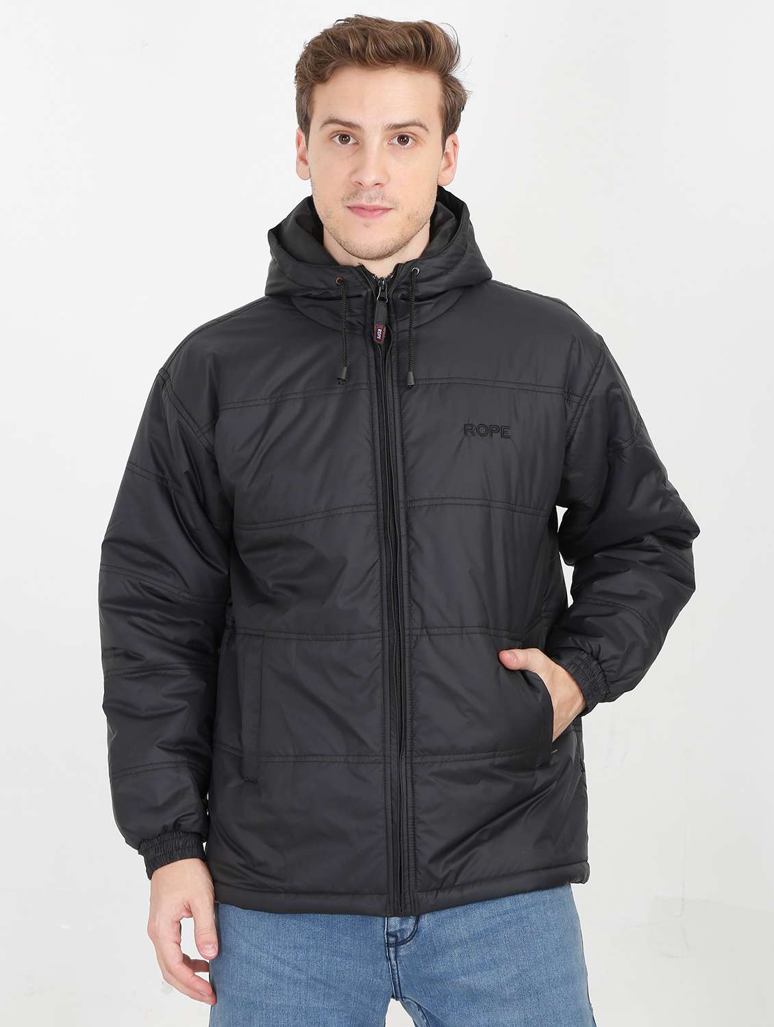 men black logo embroidered polyester casual jacket