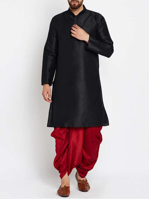 black silk blend dhoti kurta set - 15085466 - Very Small Image - 1