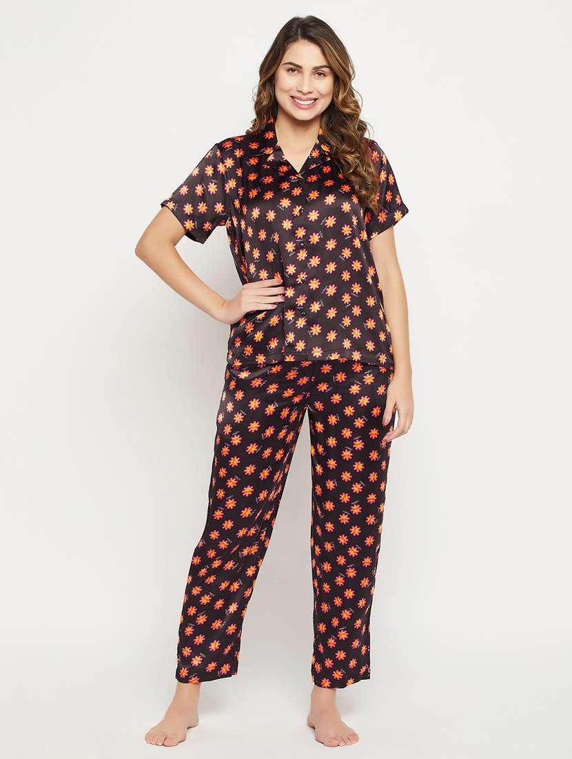 women multi color satin pyjama nightwear set