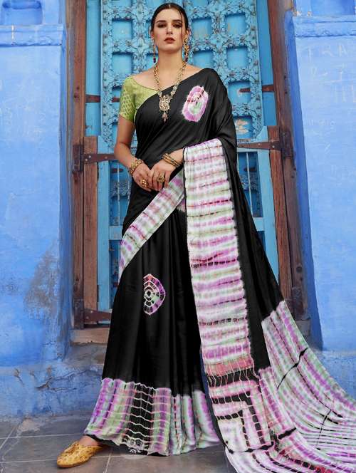 contrast border shibori saree with blouse