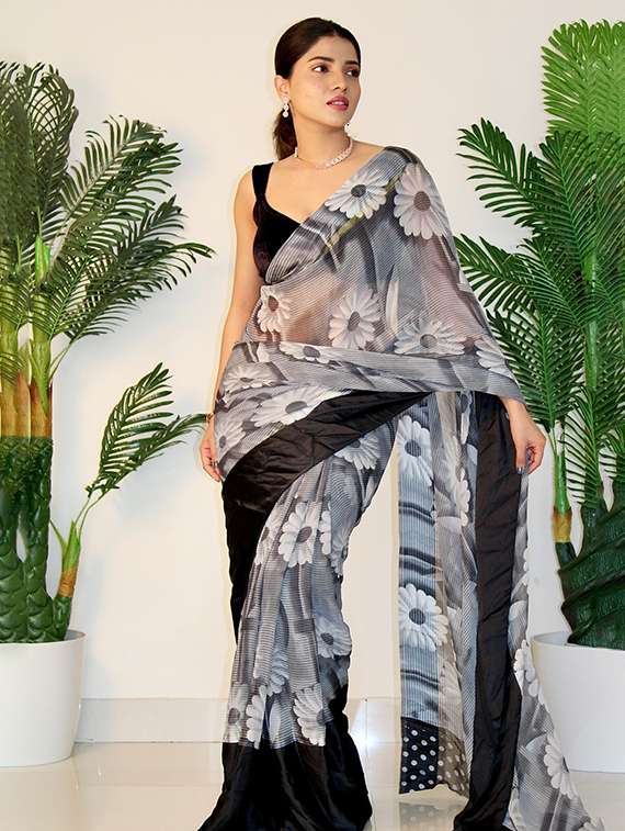 women black floral printed saree with blouse