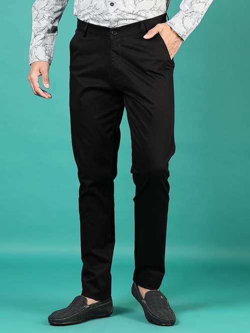 - » men solid md rise flat front casual chinos