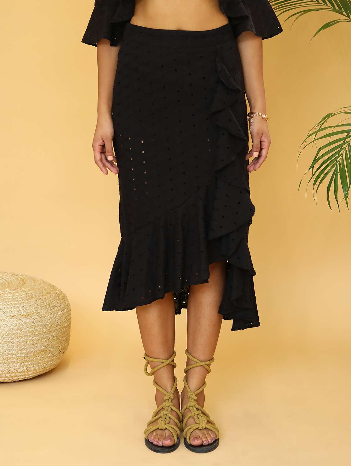 women solid schiffli ruffled skirt - 21295448 - Very Small Image - 1