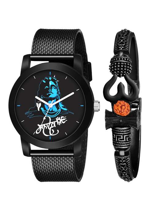 - » kajaru new fancy stylish - black pu strap & mahadev bracelet combo watch