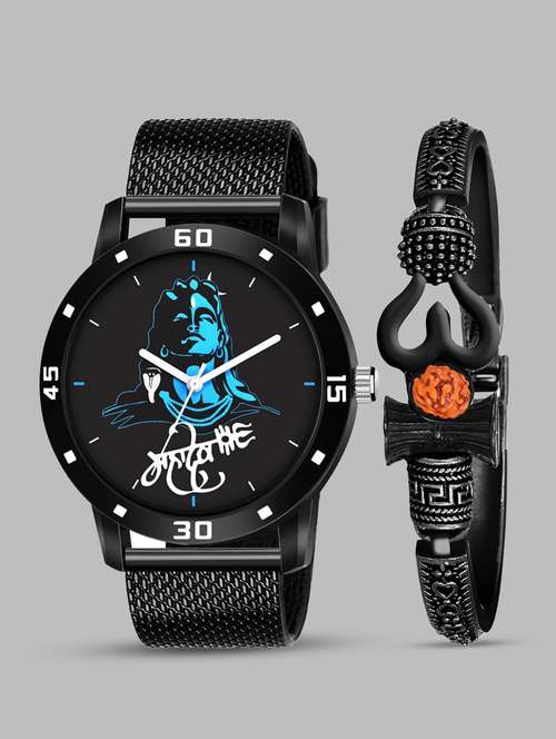 - » kajaru new fancy stylish - black pu strap & mahadev bracelet combo watch