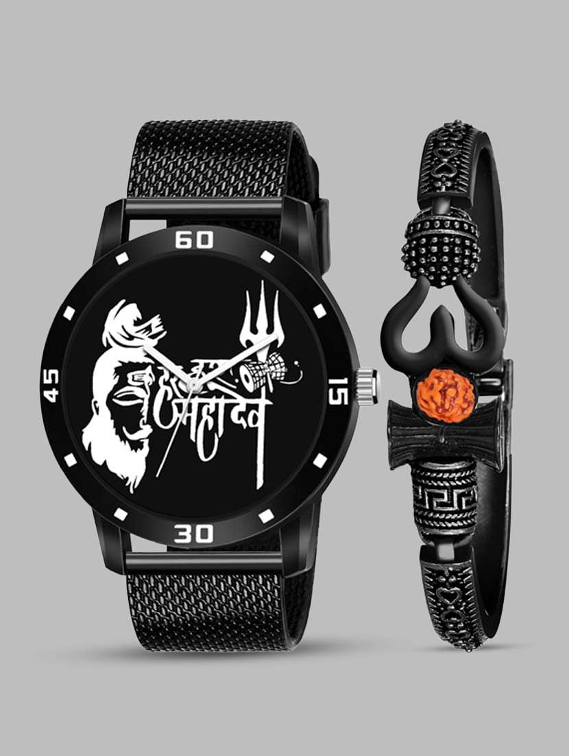 - » kajaru new fancy stylish - black pu strap & mahadev bracelet combo watch