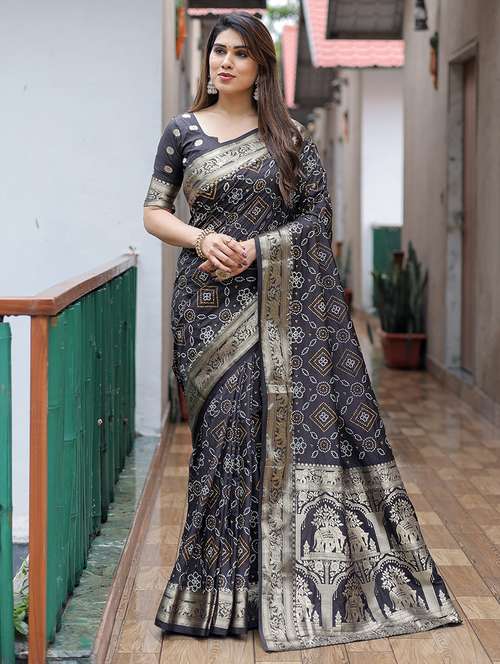 women bandhani zari bordered saree with blouse - 21713246 - Very Small Image - 1