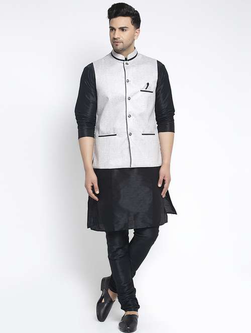 - » black solid kurta pajama ethnic wear set with silver nehru jacket