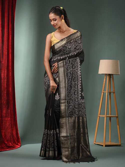 Look royal and loving in this black handwoven silk blend handloom saree. It has woven designs and patterns for a beautiful look.