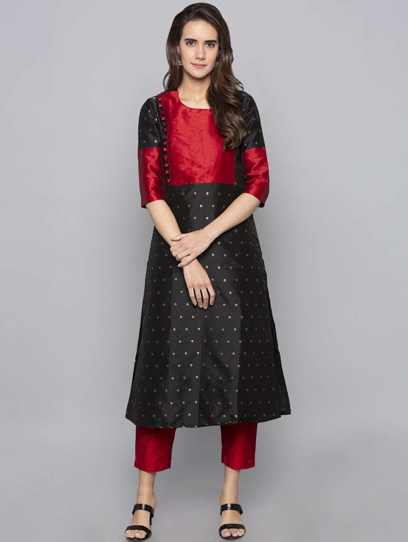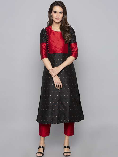 dobby silk blend straight kurta