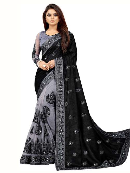 - » women's solid with work black colored saree with blouse