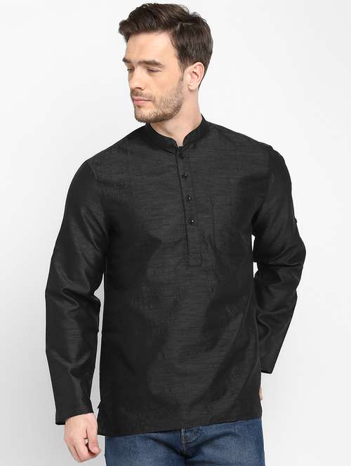 black solid silk blend short kurta