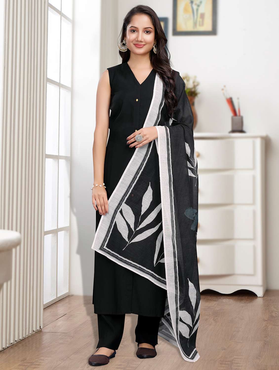 - Find gorgeous sets of ethnic wears in trending designs in black colors suitable for casual wear of occasions.