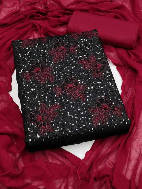 - Look ultra gorgeous in unstitched suits from Peachmode and grab these beautiful suits in black colour.