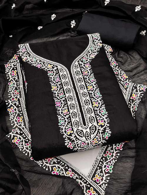 - Look ultra gorgeous in unstitched suits from Peachmode and grab these beautiful suits in black colour.