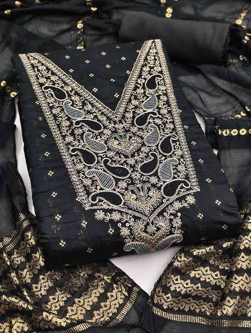 - Look ultra gorgeous in unstitched suits from Peachmode and grab these beautiful suits in black colour.