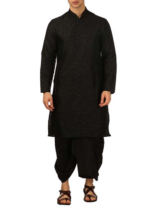 black silk blend dhoti kurta set - 16134944 - Very Small Image - 1
