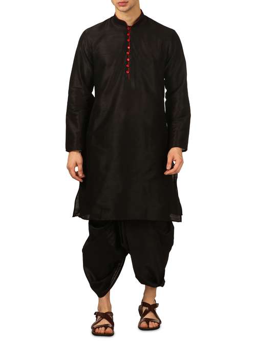 black silk blend dhoti kurta set - 16134970 - Very Small Image - 1