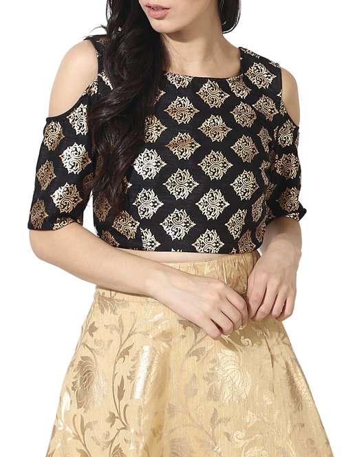 - » black silk blend printed stitched blouse