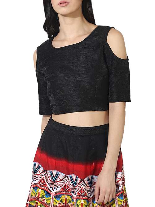 - » black silk blend solid stitched blouse