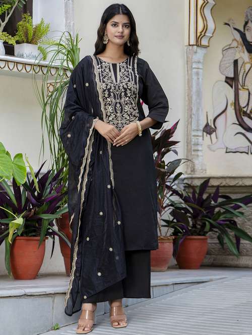 - Find gorgeous sets of ethnic wears in trending designs in black colors suitable for festive wear of occasions.