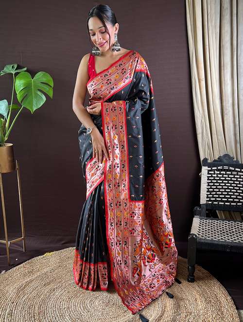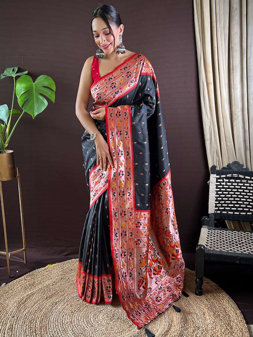 women self design jacquard work paithani saree with blouse