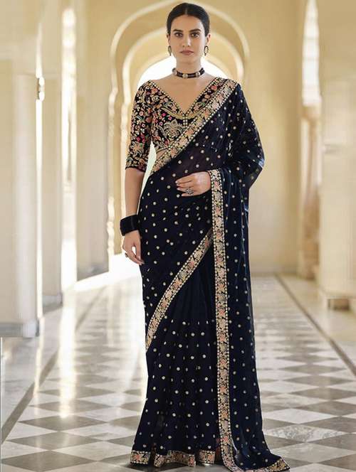 black silk embroidered saree with blouse