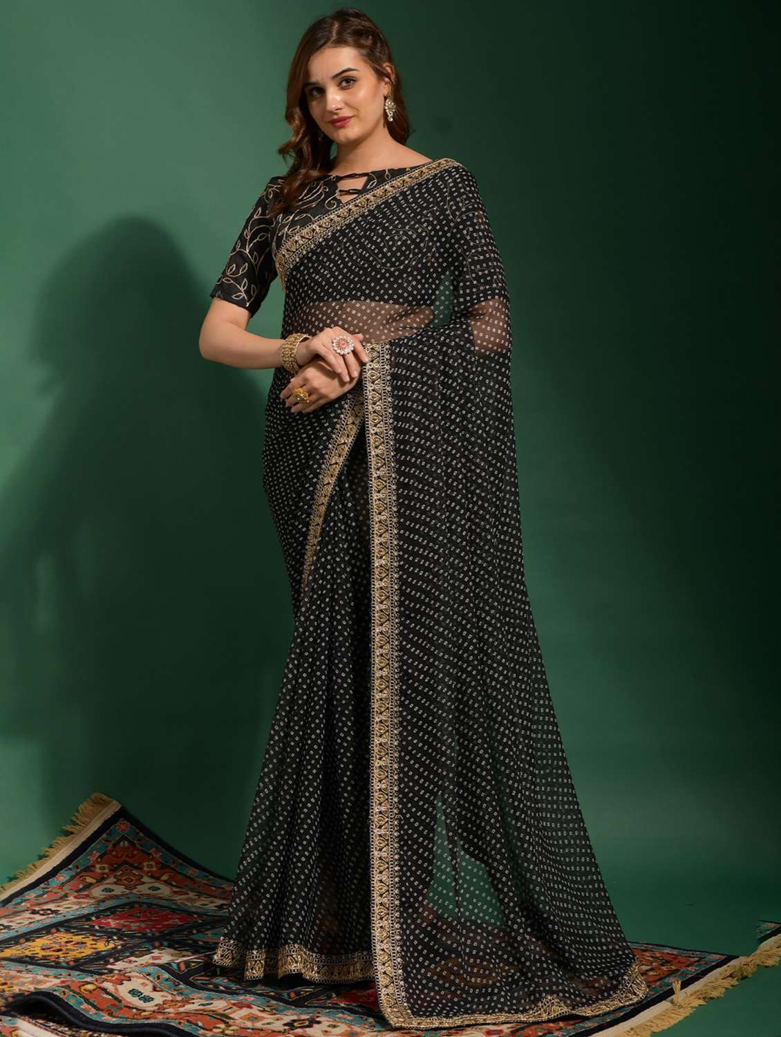 women bandhani printed bordered saree with blouse
