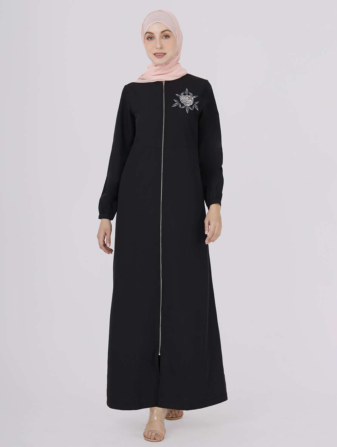 black solid polyester maxi abaya
