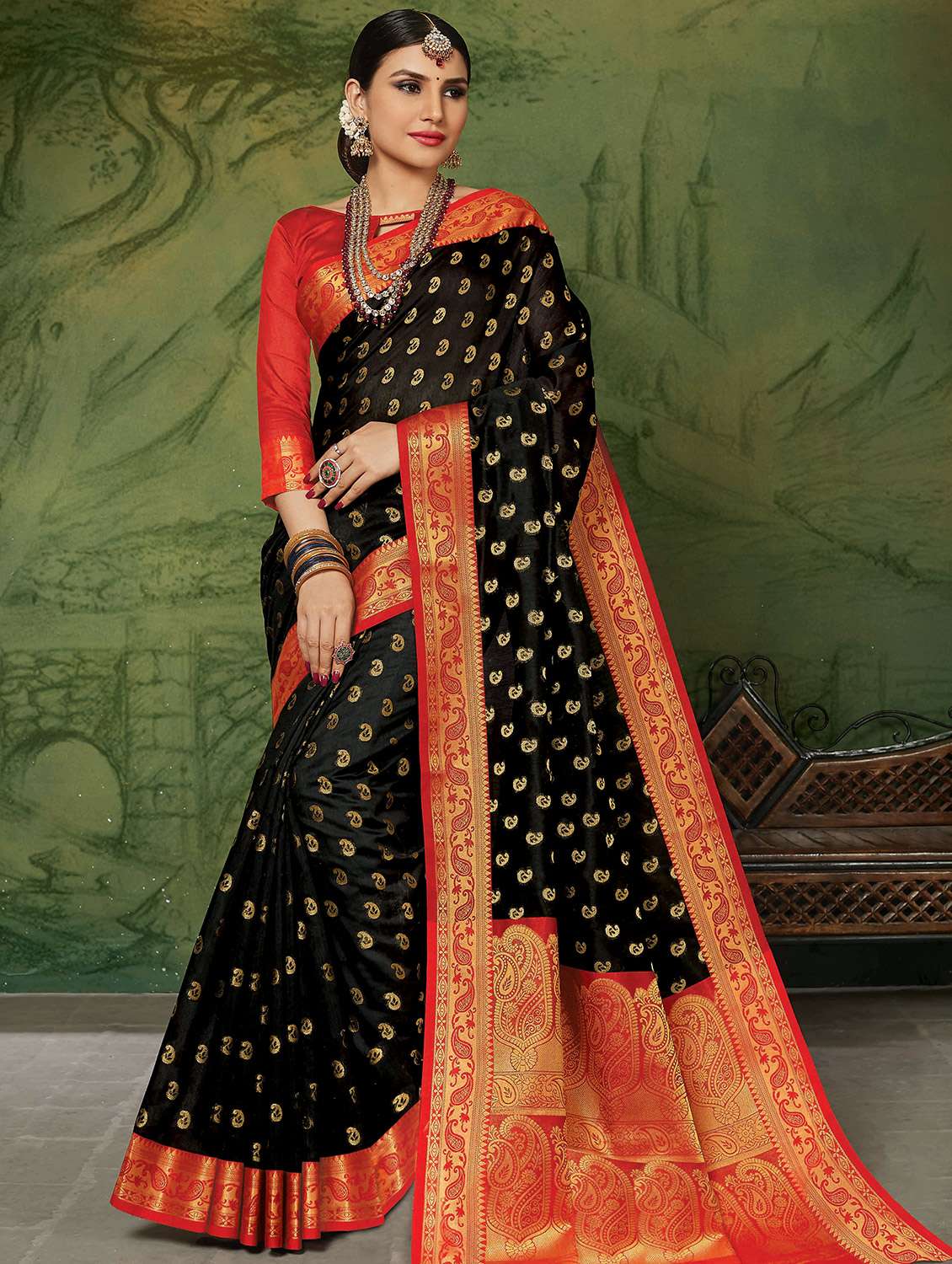 self design woven saree with blouse