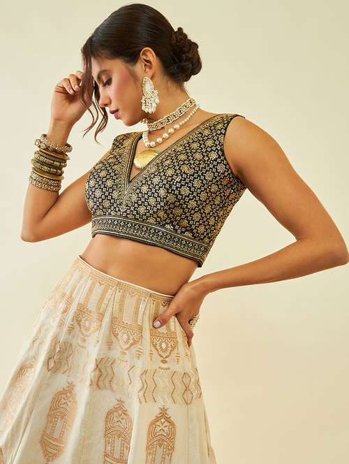 women black v-neck stitched blouse - 20406982 - Very Small Image - 1