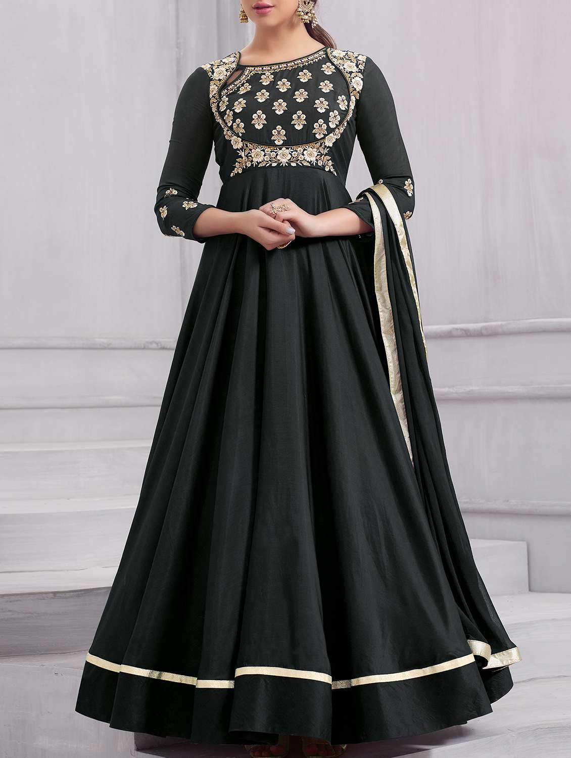 embroidered semi-stitched flared suit - 15409909 - Very Small Image - 1
