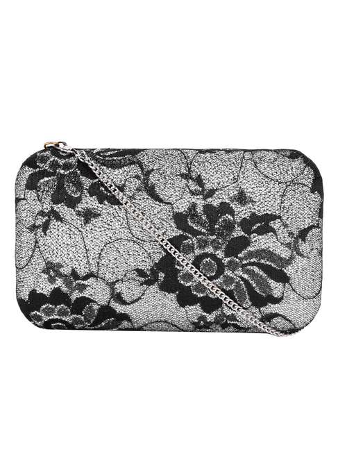 black & silver fabric clutch