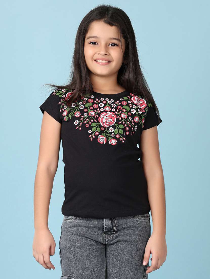- » girls front print round neck tees