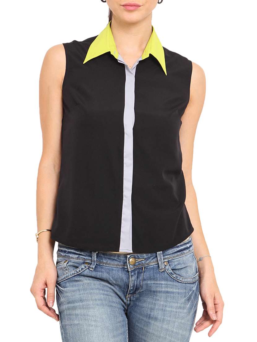 - » black sleeveless polyester shirt
