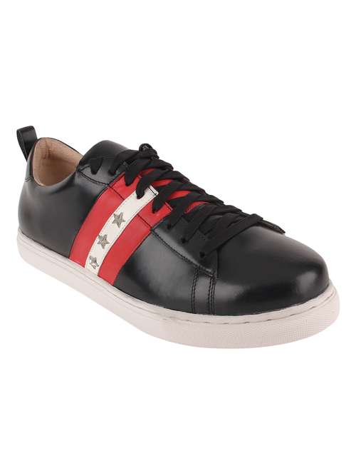 black leatherette lace up sneakers
