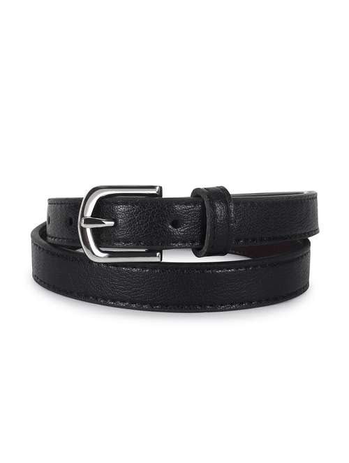 Elevate your style with our sleek 20mm black vegan leather women's belt with durable stitched edges. Crafted from the highest quality vegan leather, offering the same lasting durability as real leather, this belt features a modern shiny finish and a statement thick buckle.