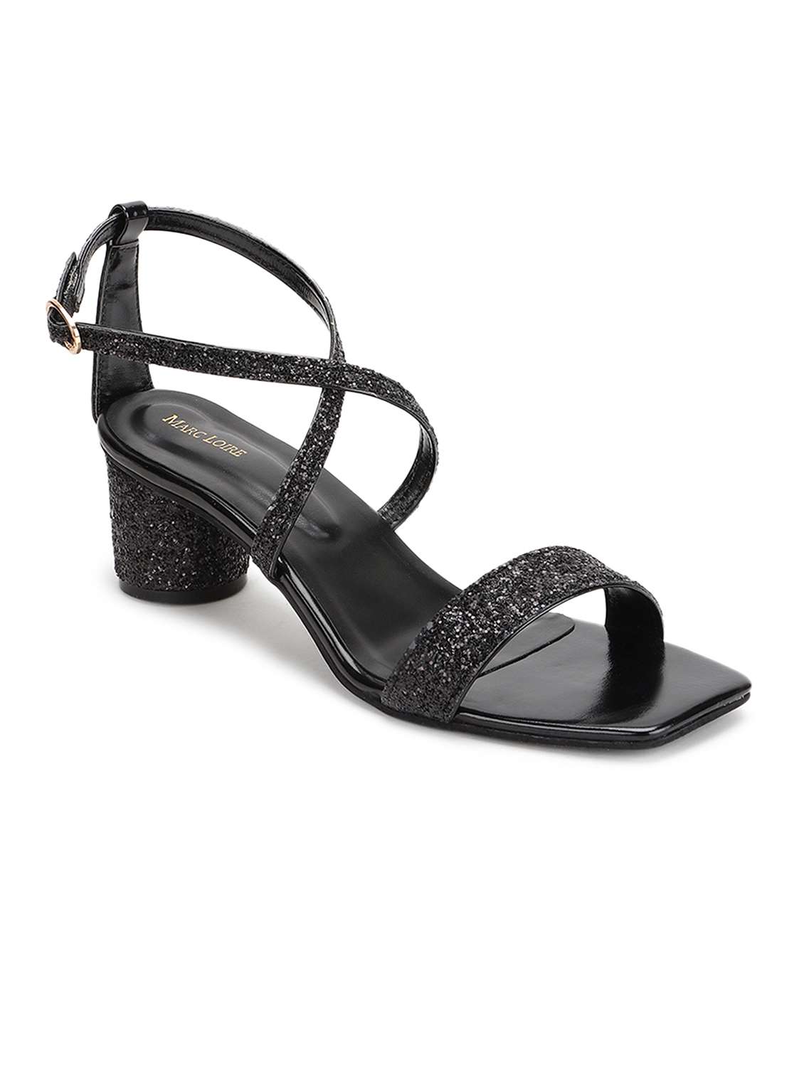 black synthetic back strap sandals