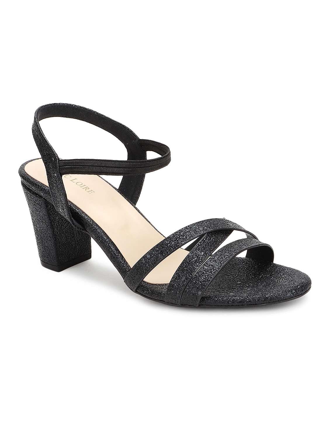 black synthetic back strap sandals
