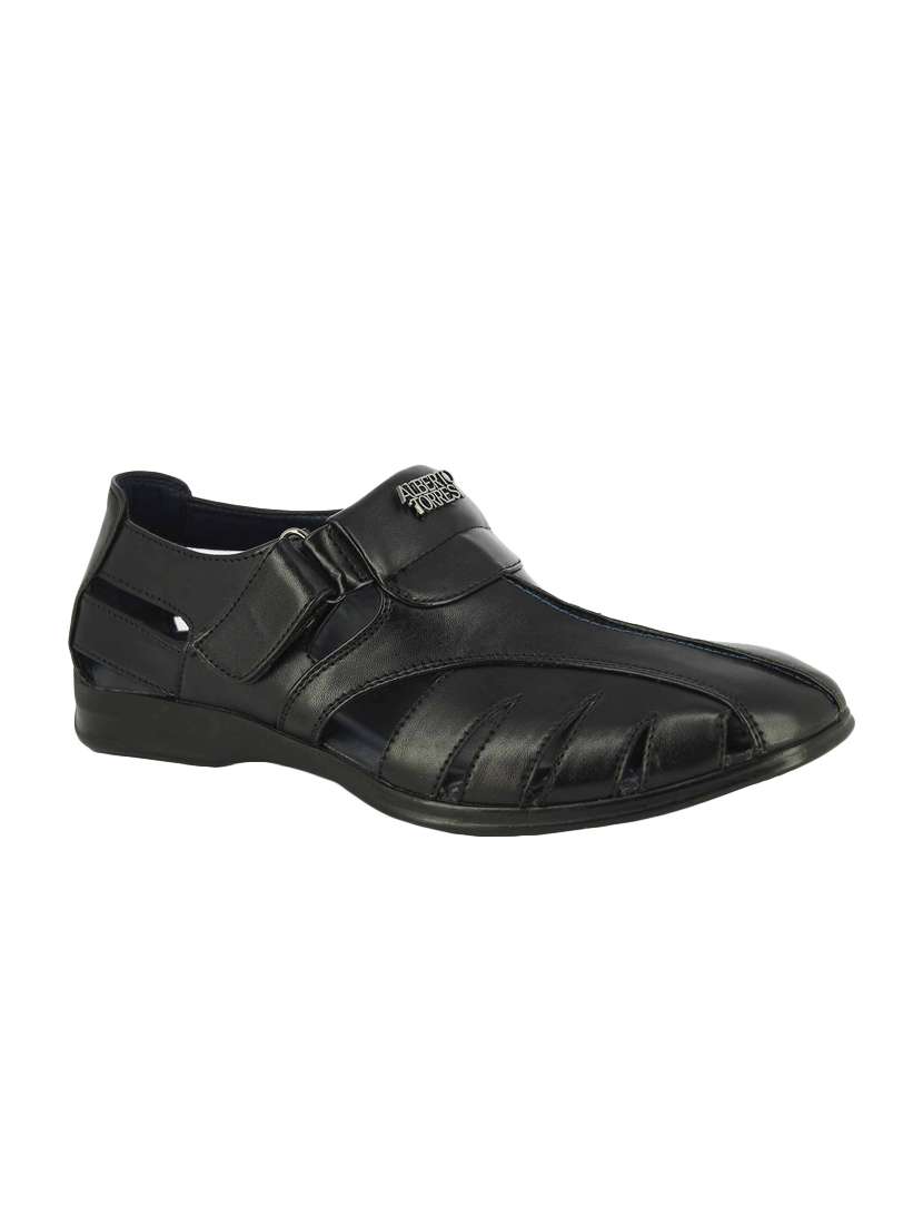 - » black leatherette slip on sandal